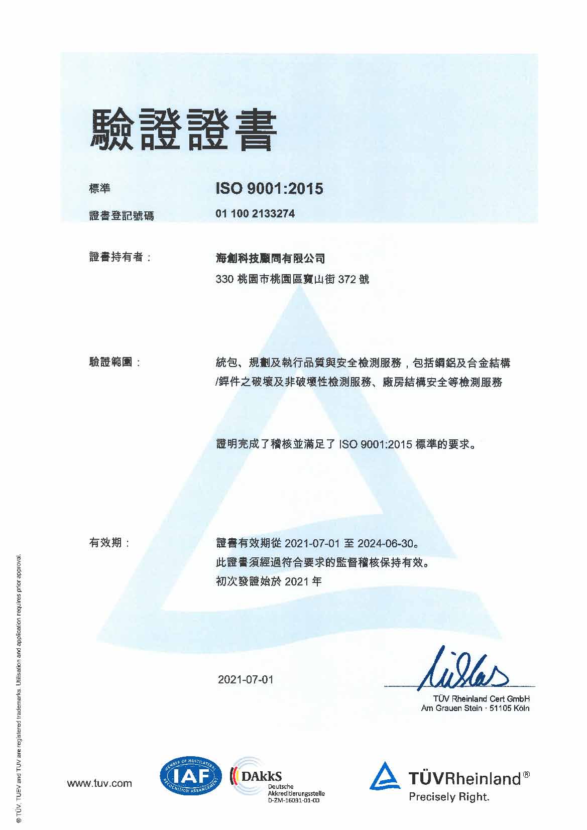 公司皆遵循ISO5817、ISO9934等眾多規範,不論是儀器設備、人員技術及品質管理都有詳細且嚴謹的作業準則。 我們建立顧問及檢測人員的溝通管道,以專業及客觀的服務來呈現每次的檢驗成果,內部將定期進行誤差分析和變異探討,來分析異常原因、操作技術、檢驗耗材及設備儀器等指認盲點及經驗紀錄,轉化成公司內部的經驗資產,客觀量化人員技術準確度,確實的強化檢驗品質及管制,增加人員和業主的信心。 |