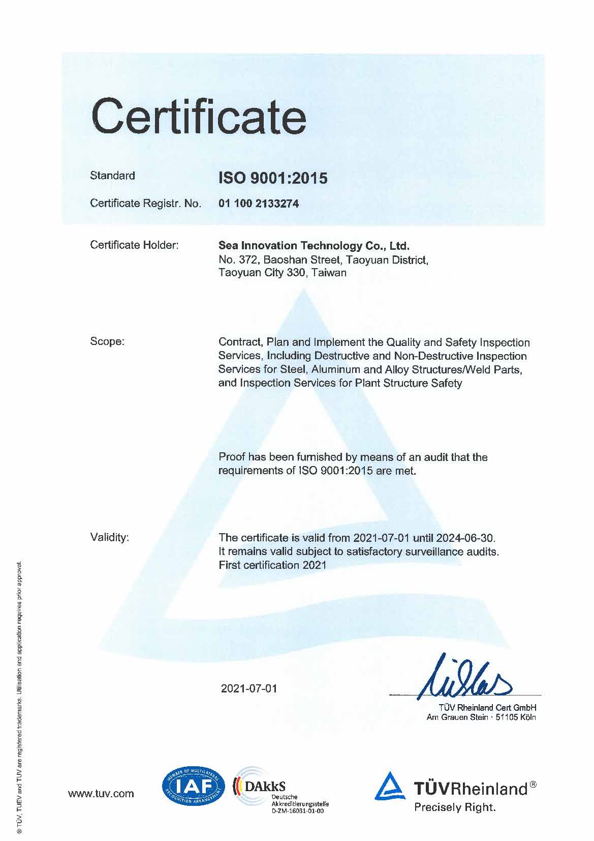 We has detailed and rigorous operating guidelines for equipment, technology and quality management. We establish a communication channel for consultants and engineers to present inspection result with professional and objective services. Our experience will transform into the company’s assets, increase technical accuracy and strengthen inspection quality, these is SIT’s Unique Characteristic. |